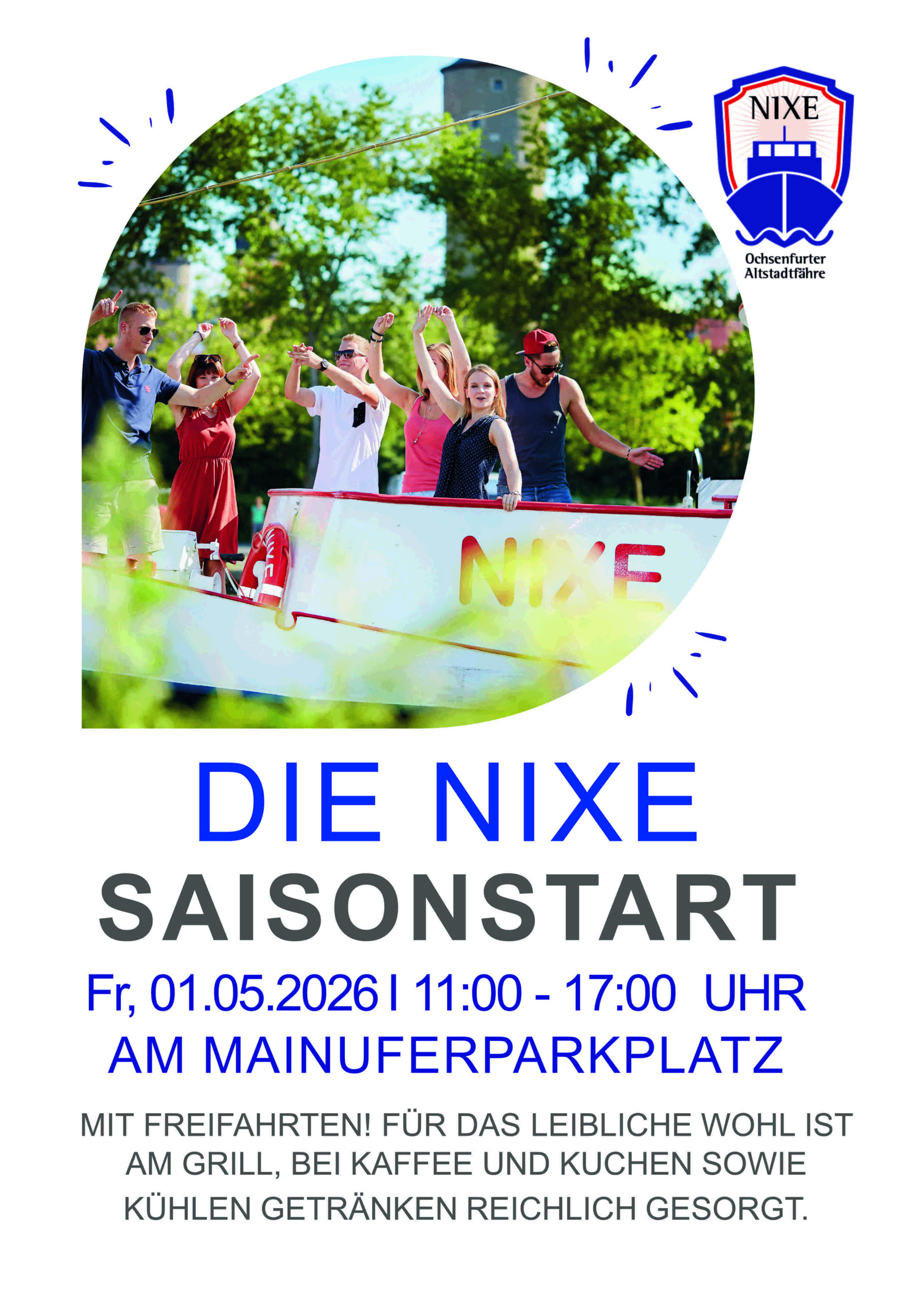 Unsere Saison startet wieder ab 01. Mai 2026, die Linienfahrten von Ochsenfurt über Marktbreit nach Kitzingen und zurück gibt es ab 03. Juli 2026 wieder jeden Freitag!
